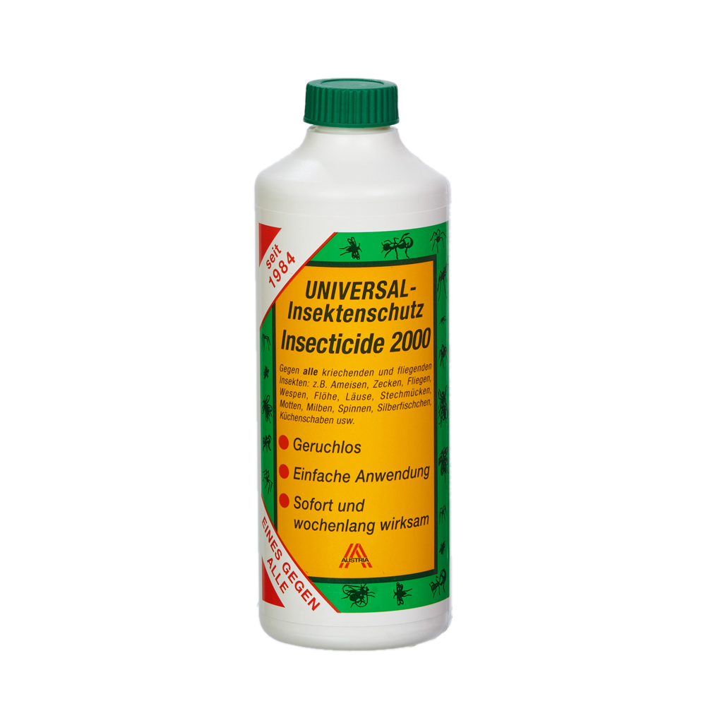 Insecticide 2000 ist ein InsektenSpray für die Behandlung von Problemen mit allen Insekten.  Insecticide 2000 fällt in keine Giftklasse und kann im Haushalt, Garten und Gewerbe angewendet werden. Insecticide 2000 wirkt sowohl bei Aufnahme als auch bei Kontakt. Insecticide 2000 hat eine Langzeitwirkung von bis zu 4 Wochen, abhängig von der Oberfläche, auf die es aufgetragen wird. Im Freien, bei Sonnen- und Regeneinwirkung bzw. auf saugfähigen Flächen ist die Wirkung kürzer als bei optimalen Bedingungen. Insecticide 2000 ist einfach anzuwenden, geruchlos und verursacht keine Flecken.