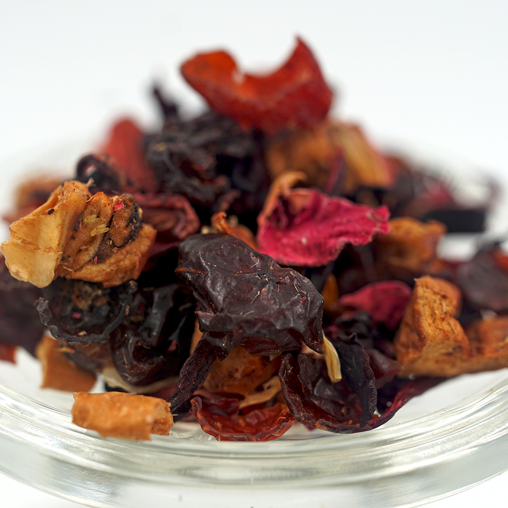 Inhaltsstoffe: Apfelstücke, Hagebutten, Hibiskus, Orangenschalen, Aroma