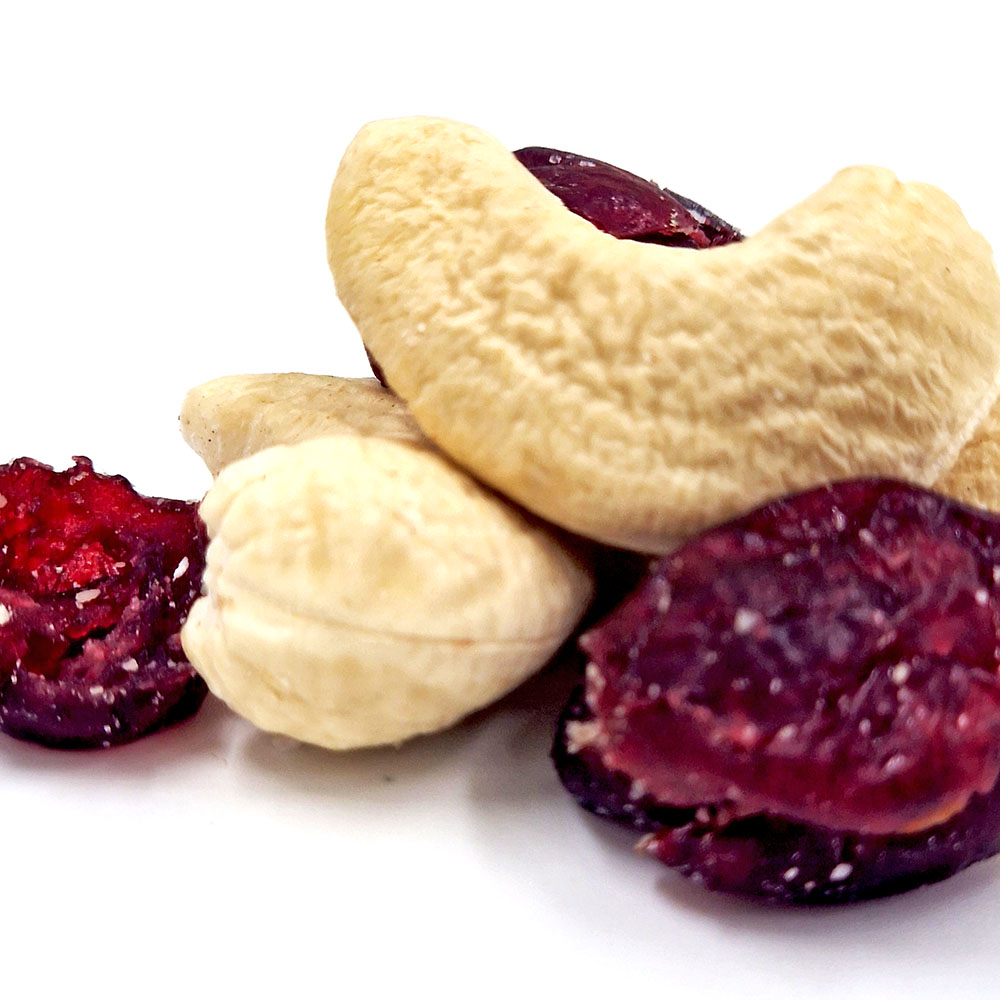 Unsere saftig-süß-säuerlichen Cranberries treffen auf knackige fein-nussige Cashewkerne. Entdecken Sie ein neue Mischung für Ihr tägliches Frühstück wie Müsli, Brei oder Porridge. Auch für selbstgemachte Müsliriegel oder Energiebällchen eignet sich dieses hervorragende Duo perfekt. Trockenfrüchte Nüsse